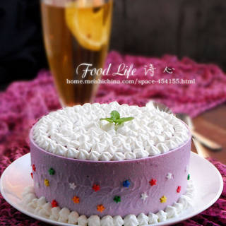 原料:6寸蛋糕、紫薯、淡奶油、牛奶、吉利丁、白糖。
