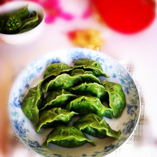 原料:面粉、菠菜、鸡蛋、清水、白菜、猪肉、葱、姜、酱油、美极鲜、五香粉、花生油、盐。
