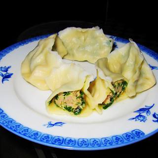 原料:虾仁、韭菜、猪肉、香菇、油、盐、料酒、黑胡椒粉、生抽、糖、味精。
