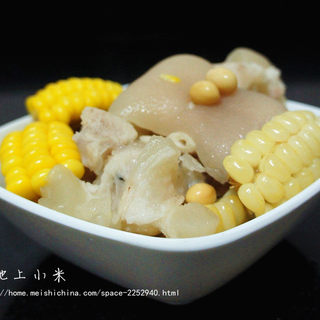 原料:猪蹄、黄豆、白玉米、黄玉米、桔皮、八角、姜、米醋、盐。