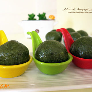 原料:新鲜艾草、糯米粉、粘米粉、红豆沙馅、白糖。