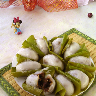 原料:糯米粉、艾叶、粘米粉、红豆馅。