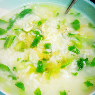 原料:小青菜、剩米饭、虾皮、盐、香油。