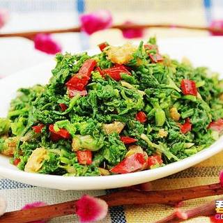 原料:荠菜、海米、红辣椒、蚝油、虾油、香油。