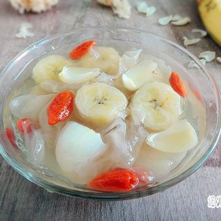 原料:鲜百合、香蕉、干银耳、枸杞、冰糖。