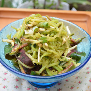 原料:鱼腥草、青笋、小葱、盐、糖、生抽、辣椒油、香油、醋。