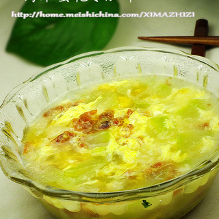 原料:冬瓜、海米、鸡汤、绍酒、胡椒粉、鸡蛋、水淀粉、盐、味精、香油。