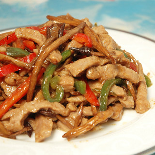 原料:牛里脊、茶树菇、红菜椒、绿菜椒、葱、姜、蒜、蚝油、黄酒、酱油、盐、白砂糖、花生油、蛋清、淀粉、白胡椒粉。