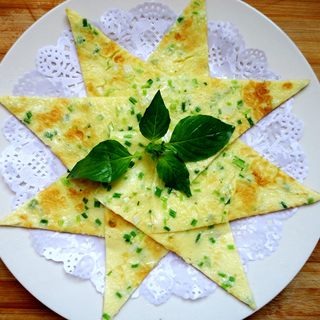 原料:香葱、鸡蛋、面粉、清水、食盐。