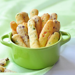 原料:黄油、细砂糖、低粉、鸡蛋、胡萝卜、豌豆、紫薯。