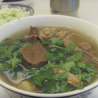 原料:牛心、牛肠、牛肚、牛头肉、葱、姜、盐、香菜、白胡椒粉、辣椒面、醋、鸡精。