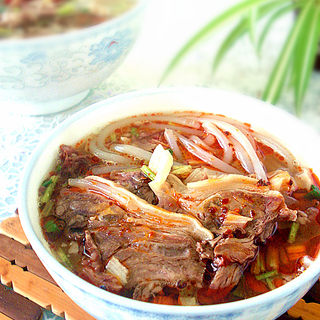 原料:羊杂、红薯粉条、葱末、香菜、花椒水、辣椒油、盐、味精、胡椒粉、醋、生抽、香油。