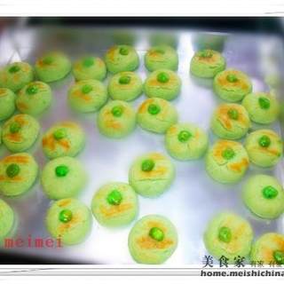 原料:青豆粉、面粉、粟米油、糖粉、蛋白、青豆。