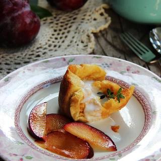 原料:普通面粉、纯牛奶、鸡蛋、盐、黄油、李子、蜂蜜、柠檬汁、酸奶。