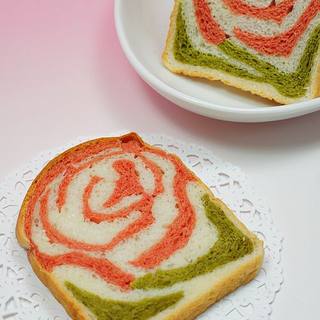 原料:高筋面粉、糖、牛奶、黄油、盐、发酵粉、红粬粉、抹茶粉。