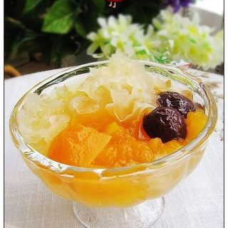 原料:泡发银耳、木瓜、红枣、冰糖。