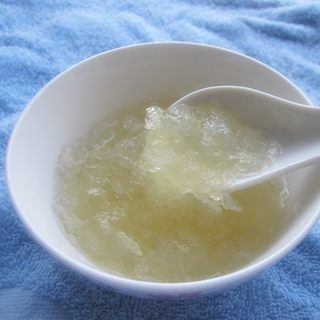 原料:干银耳、雪梨、枸杞、薏米、冰糖、柠檬。