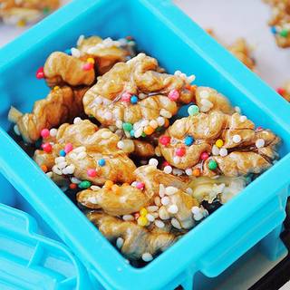 原料:核桃仁、白芝麻、白砂糖、油。