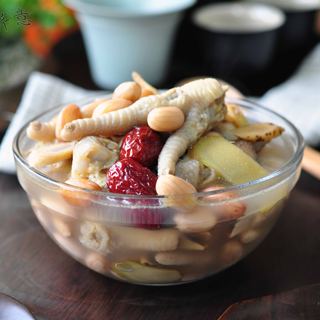 原料:凤爪、大枣、生姜、花生、黄芪、盐、胡椒粉、糖。