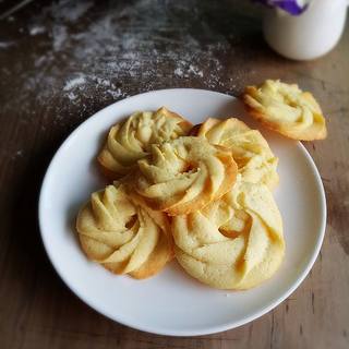 原料:黄油、糖粉、低粉、清水、玉米油、盐、香葱。