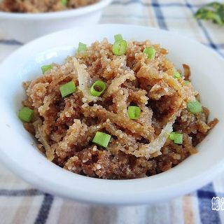 原料:萝卜、五香蒸肉粉、生抽、葱花。