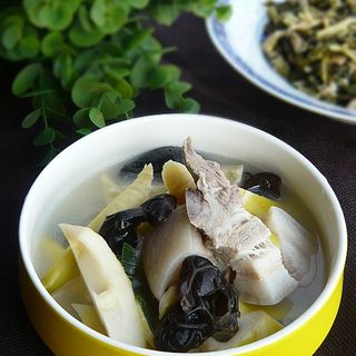 原料:春笋、猪蹄、莴笋、咸肉、姜、料酒、盐。