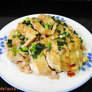 原料:三黄鸡、油、盐、料酒、姜、葱、鲜抽、鸡精、糖。