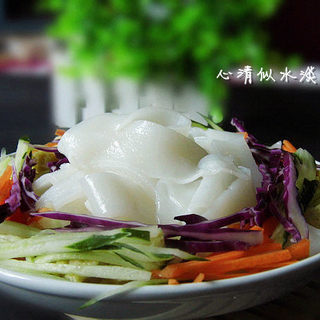 原料:面、水、青菜、莲花白、绿豆芽、葱花、盐、花椒粉、辣子面、醋、酱油。