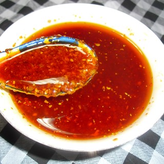 原料:辣椒面、花生油、蒜末、芝麻、葱末、姜末、盐、醋。