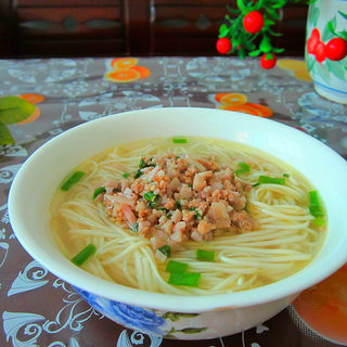 原料:上汤、面、香芋、肉丁、葱花、食用油、精盐、鸡精。