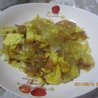 原料:凉皮、鸡蛋、葱花、盐、味精。