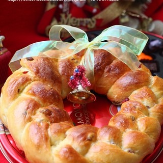 原料:高粉、低粉、白糖、盐、酵母、蛋黄、全蛋液、牛奶、黄油、葡萄干、蔓越莓干。