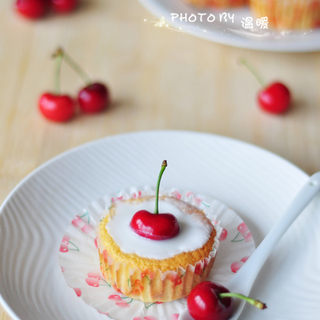 原料:酸奶、鸡蛋、低粉、玉米淀粉、黄油、糖、樱桃。