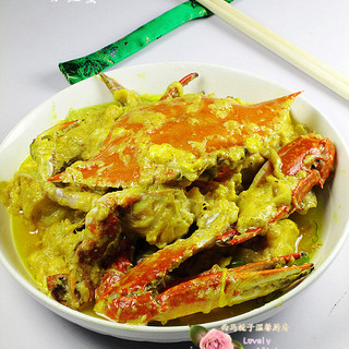 原料:梭子蟹、鸡蛋、葱、淀粉、咖喱块、椰奶、姜。