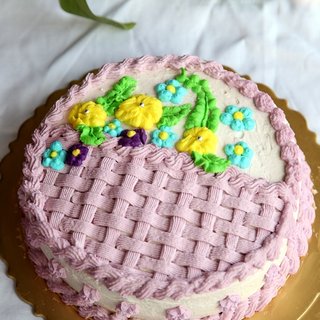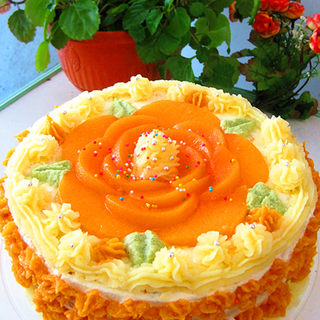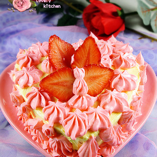 原料:八寸戚风蛋糕、安佳淡奶油、细砂糖、糖水黄桃、食用色素。