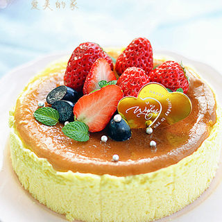 原料:奶油奶酪、黄油、蛋黄、砂糖、玉米淀粉、牛奶、蛋白、砂糖、蜜桃果酱、草莓、提子、糖珠、薄荷叶。