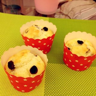 原料:低粉、植物油、细纱糖、盐、泡打粉、鸡蛋液、牛奶、葡萄干。