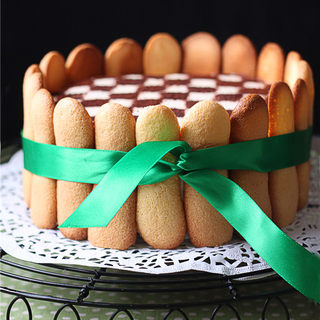 原料:可可戚风蛋糕、淡奶油、椰浆、细砂糖、吉利丁、可可粉、手指饼干。