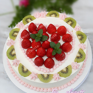原料:十寸戚风蛋糕、淡奶油、白糖、草莓、奇异果、食用色素。