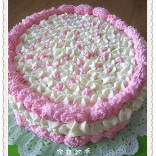 原料:8寸圆戚风蛋糕、淡奶油、自制草莓酱、玫红色食用色素。