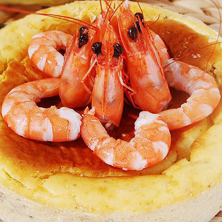 原料:奶油奶酪、鸡蛋、虾、培根、洋葱、菜椒、黄油、醋、盐、糖、黑湖椒、牛奶、热水。