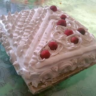 原料:蛋糕、鲜奶油、黑巧克力、白巧克力、巧克力酱、香橙酱。