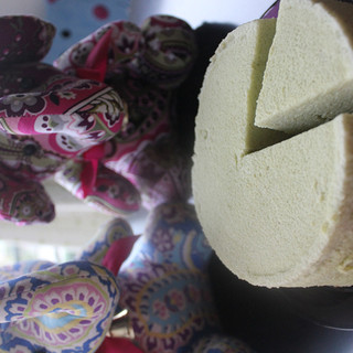原料:奶油奶酪、黄油、牛奶、抹茶粉、低筋面粉、蛋黄、蛋白、细砂糖。