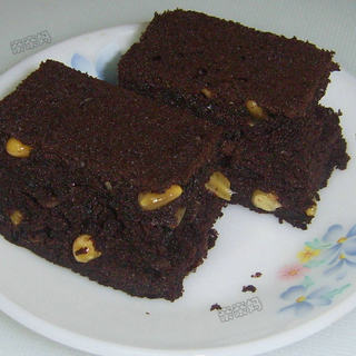 原料:低粉、可可粉、小苏打、糖、蛋、黑巧克力、酸奶、松仁、核桃仁。