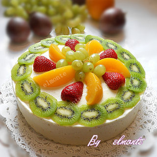 原料:蛋黄、鲜百香果汁、低筋面粉、蛋白、鲜奶油、水、奇异果、草莓、罐头黄桃、葡萄、糖、玉米油、蜂蜜、醋、吉利丁粉。