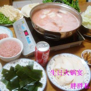 原料:羊肉、羊肉片、豆腐、菠菜、白菜心、香菇、杏鲍菇、金针菇、粉丝、白萝卜、糖蒜、葱、姜、番茄汁、芝麻酱、调味酱油、豆腐乳、盐、八角。