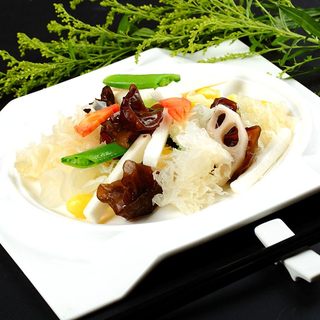 原料:黑木耳、莲藕、葱、姜、油、盐、酱油。