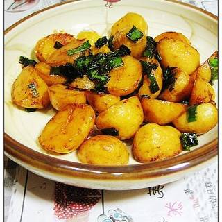 原料:熟小土豆、葱、盐、酱油、高汤精。