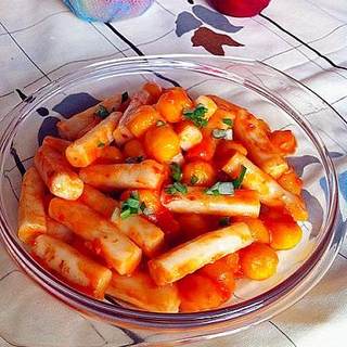 原料:年糕、番茄、南瓜泥、糯米粉。
