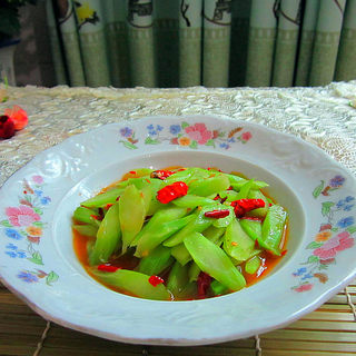 原料:莴笋、干辣椒、精盐、生抽、味精。